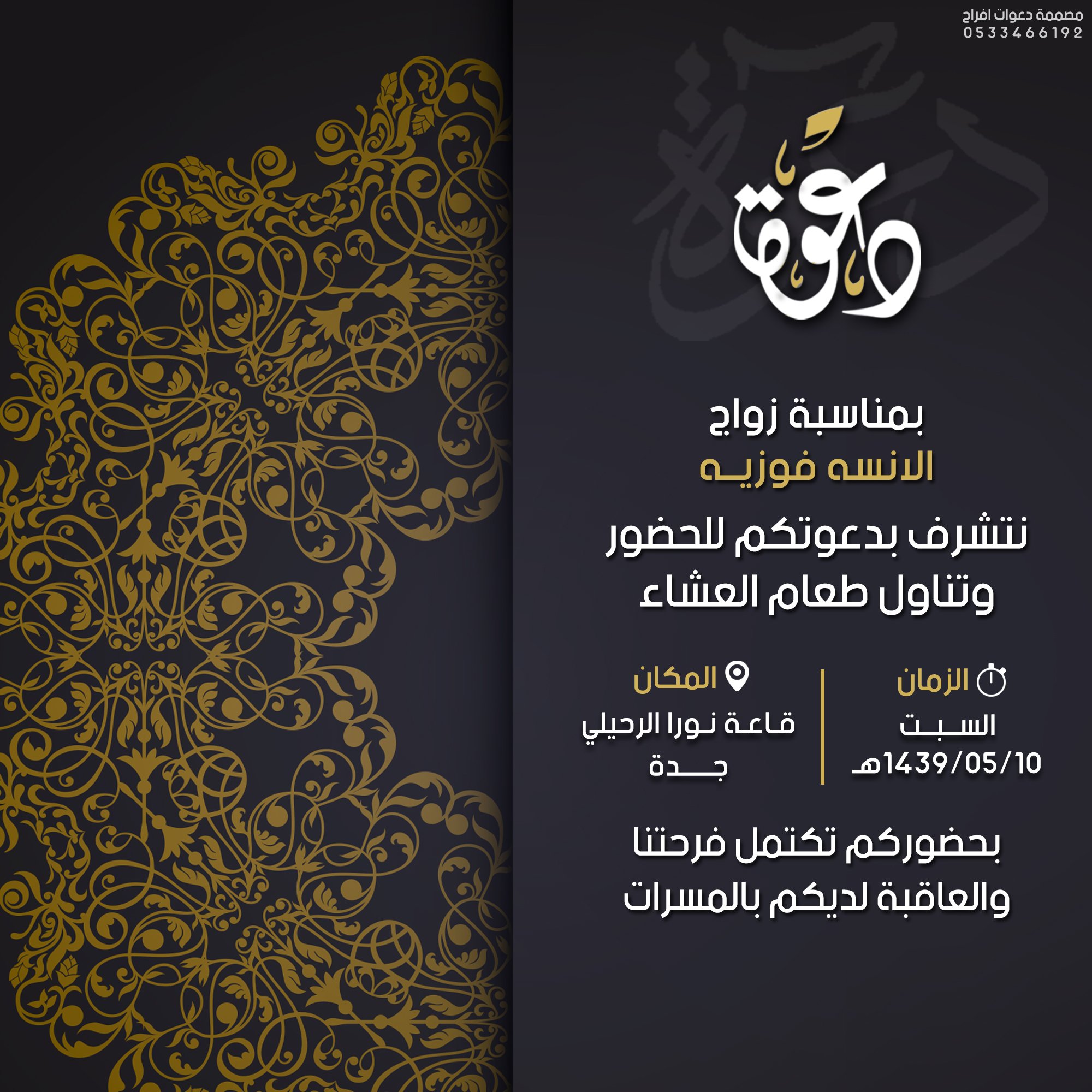 حضوركم للفرح معي أجمل هدية. نموذج صورة لبطاقة دعوة.سعر البطاقة ٥٠ ريال للتواصل: صمّم دعوة من المستحيل رفضها. إنشاء كتب الكترونية غنية بالفيديوهات وملفات الصوت لكل دورة تدريبية. • دعوة زفاف الكترونية & دعوة عقد قران • • السعر: